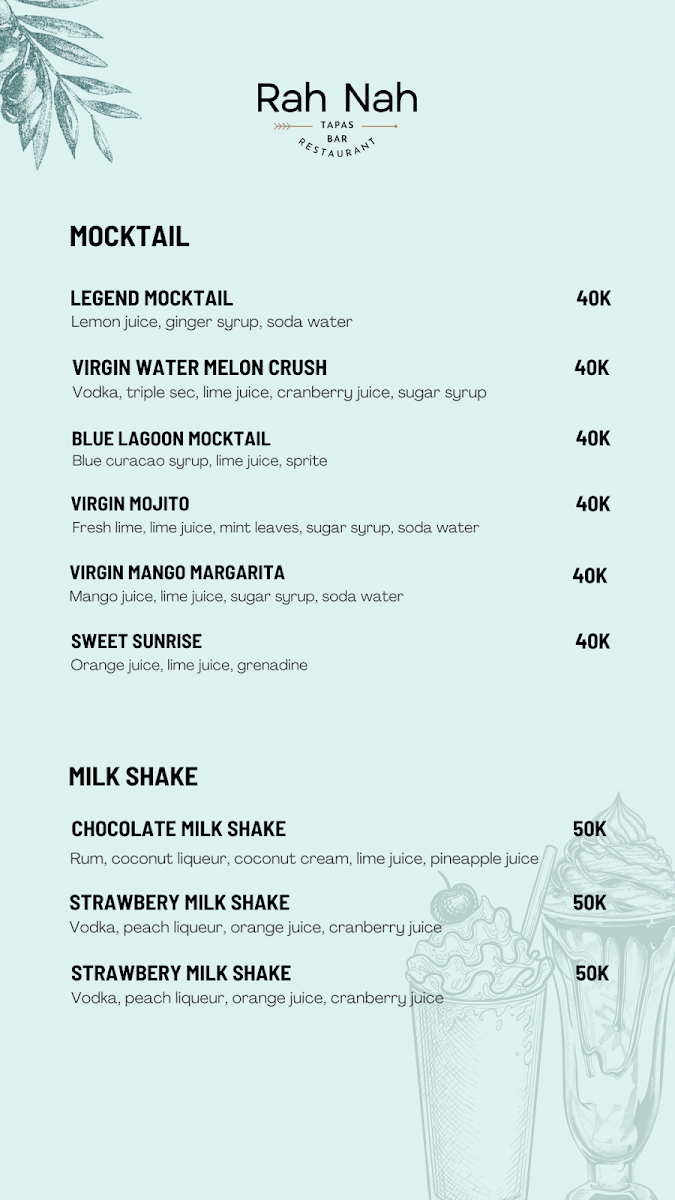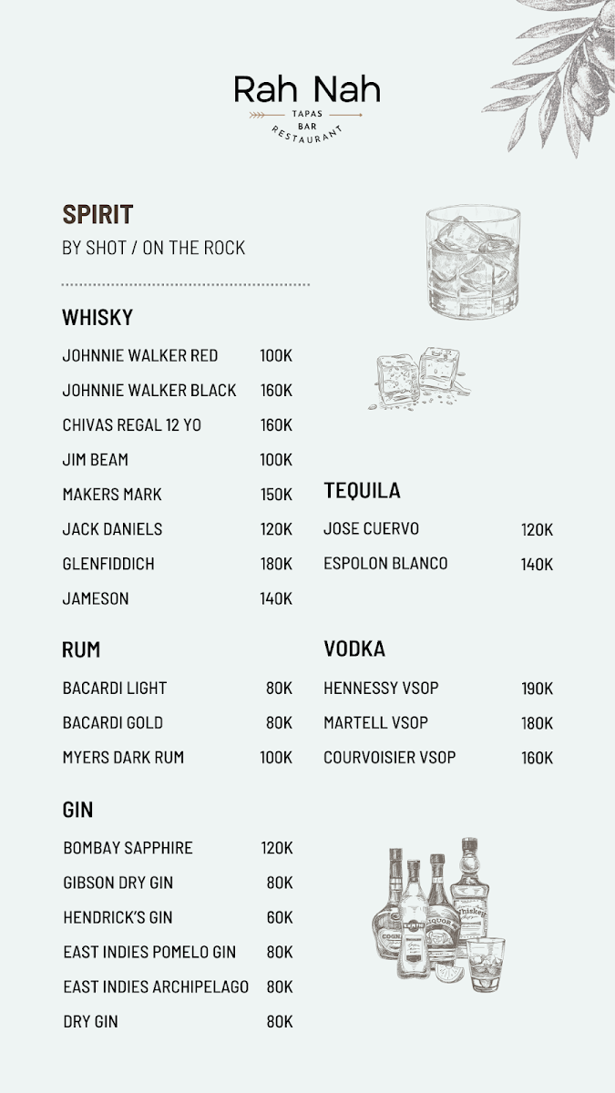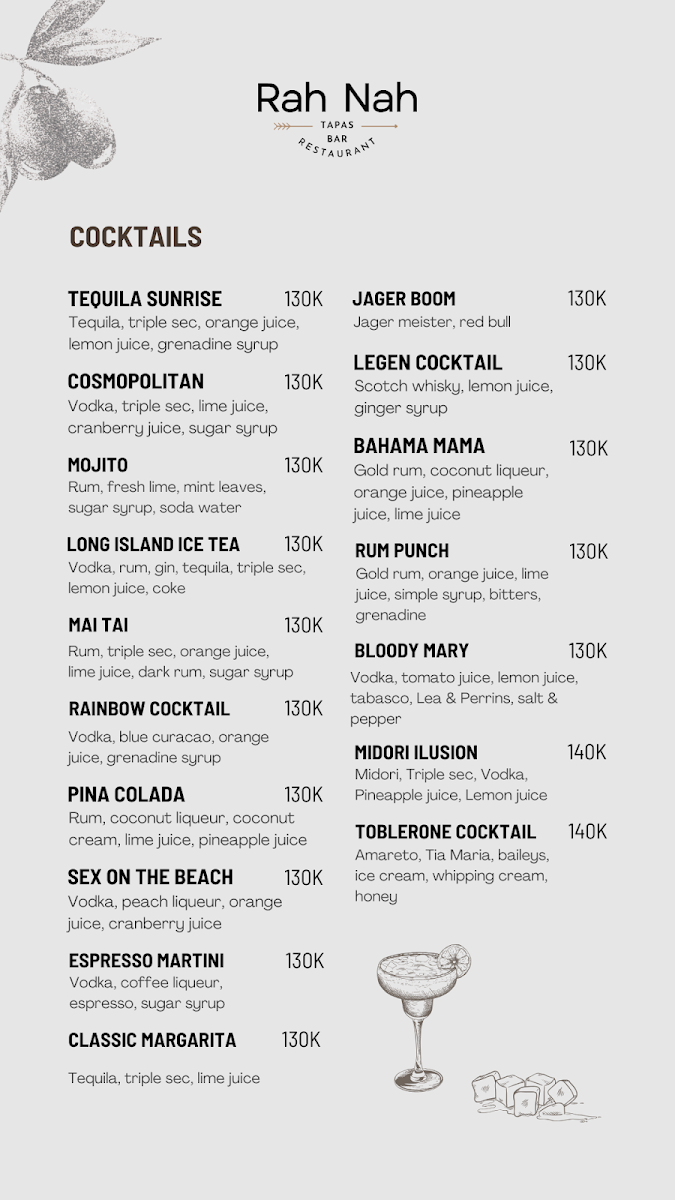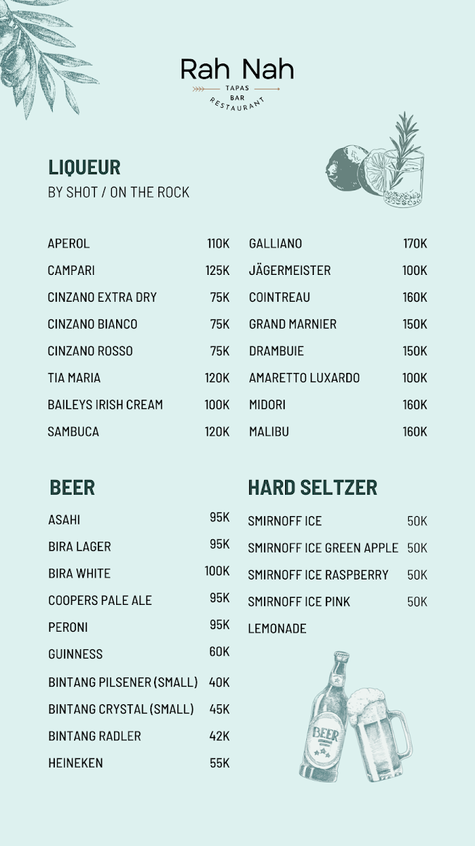 Rah Nah Tapas Bar & Restaurant, Lovina Menu